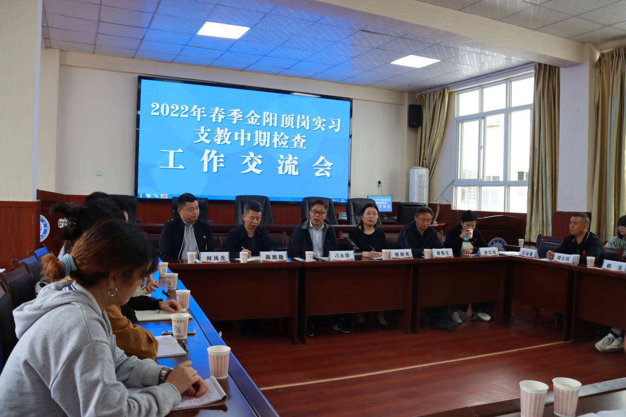 交流座谈会上,刁永锋高度赞扬了支教师生主动承担新时代青年使命,助力乡村教育振兴,并提出了三点希望:一是坚定理想信念,争做“四有”好老师。要坚定教育初心,以远大的志向、纯粹的心灵、高尚的节操要求自己,积极引导、教育学生,点燃学生梦想。二是厚植教育情怀,提升职业素养。要谨记“博文大理厚德笃行”校训,在工作中发扬“艰难困苦玉汝于成”精神,在实践中不断提升师范素养,夯实教育教学本领,做好教育振兴先行者。三是树牢安全意识,确保支教安全。要严格遵守疫情防控规定,确保身体健康;关心关注气候变化等,保障人身财产安全。同时,刁永锋与金阳县政府、金阳县教体科局就基础教育振兴、顶岗实习支教开展、校地项目合作等进行了深入交流。