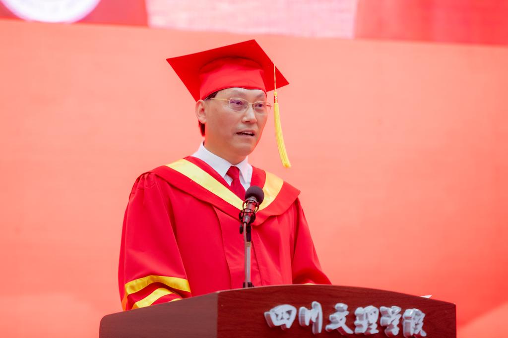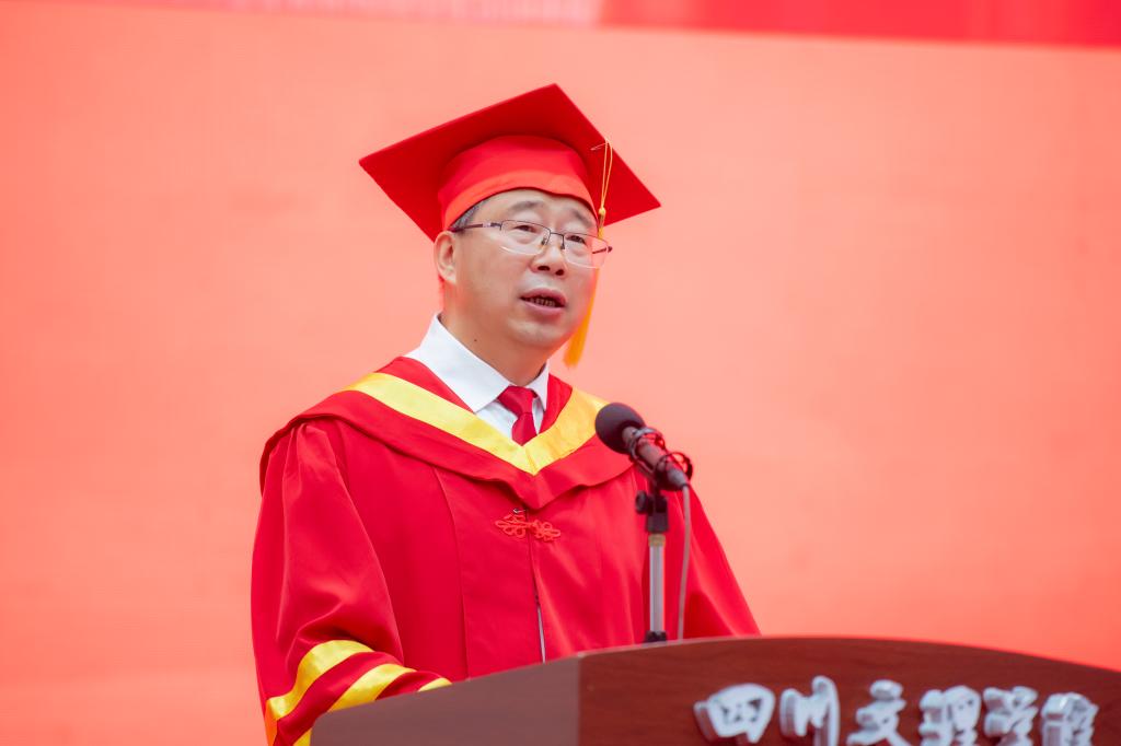 “用青春诠释奋斗,用奋斗托起人生。”在毕业典礼上,刁永锋说:“每当清晨听到你们朗朗的读书声,我觉得这就是你们最美的奋斗声音;每当看到你们在田径场上奋力向前奔跑的样子,我觉得这就是你们最美的奋斗身姿;每当瞧见你们在图书馆、夜灯下忘我看书的样子,我觉得这就是你们最美的奋斗模样。我为你们身上展现出的奋斗拼搏精神点赞”!人生道路千万条,实干第一条。没有躺平等来的辉煌,只有奋斗拼来的精彩。刁永锋叮嘱同学们,要坚守“强国有我、奋斗有我”的价值观念。作为新时代青年,希望你们自觉树立“强国有我、奋斗有我”的价值观念,要实现人生美好的梦想,既要有高远的志向,也要有辛勤的付出,作为自己的价值取向,形成奋斗最美丽、奋斗最光荣、奋斗最崇高的共同价值信仰。要秉承“艰难困苦,玉汝于成”的学校精神。作为新时代的文理青年,你们要勇于在艰苦奋斗中净化灵魂、磨砺意志、坚定信念。人类的美好理想,都不可能唾手可得,都离不开筚路蓝缕的艰苦奋斗。同学们只有不断发扬“艰难困苦,玉汝于成”的奋斗精神,才能跨越人生长征途中的“雪山”“草地”,才能征服你们人生中的“娄山关”“腊子口”。要增强“敢于奋斗、善于奋斗”的过硬本领。人唯有增强奋斗的本领才能更好地奋斗。奋斗不是简单的向前冲,也不是一味蛮干,而是要善于奋斗。善于奋斗的根本和关键就是要具备奋斗的本领,就是要有成事的真才干,真能力,在关键时刻冲得上去,危难时刻豁得出来。要培养“脚踏实地,真干实干”的优秀品质。奋斗是梦想的基石,真干实干是奋斗的本质特征。你们要做起而行之的实干家,不做坐而论道的空谈者。无论今后有什么样的人生目标,有什么样的职业选择,希望你们都能在远大志向的指引下,与时代同向同行,脚踏实地、踔厉奋发,撸起袖子真干实干,干出自己的一片天地。要践行“国之大者,为国为民”的奋斗使命。无论是身处顺风还是逆境,无论是处于人生的高光时刻,还是处于人生的暗淡瞬间,请时刻牢记自己的初心使命,在自己工作与生活中用奋斗诠释使命担当、用奋斗诠释人生价值。