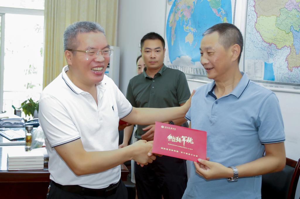 为贯彻落实党中央、国务院、中央军委和省委省政府、省第十二次党代会关于双拥工作的决策部署,在中国人民解放军第95个建军节来临之际,学校向pp电子全体退役军人、现役军人家属和达州军分区送上节日慰问和美好祝福。受党委书记王成端、校长刁永锋的委托,党委副书记侯忠明、副校长徐晓宗分别带队开展走访慰问。