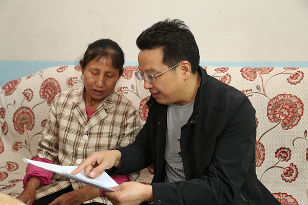 王成端一行到达柏树坝村后不顾疲劳随即分头入户开展活动。王成端来到帮扶对象刘德明家中,实地查看吃、穿、住、用等情况,详细了解是否存在“两不愁,三保障”突出问题,并通过大数据平台APP一一核对各种信息,认真填写调查表。刘德明激动地说:“感谢党和国家的好政策,关心普通老百姓。感谢王书记,一直这样关心、惦记、帮助我。”王成端说:“为人民服务是我们党的宗旨,关心群众、爱护群众是我们的职责所在,希望你保重身体,日子越过越好。”