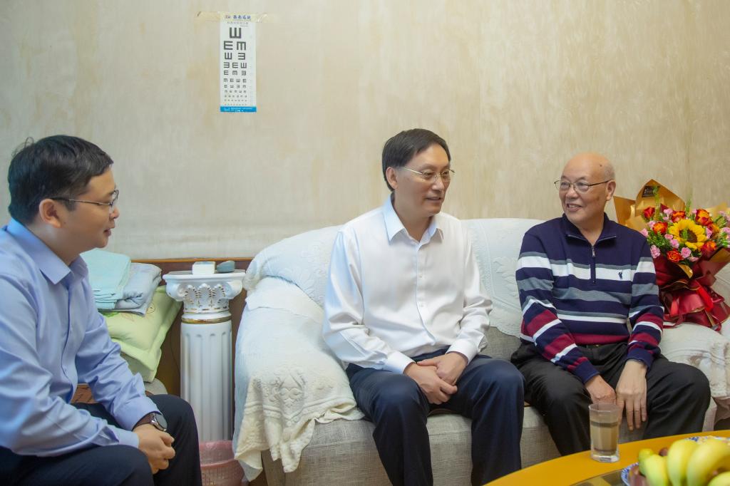 在86岁高龄李景荷家中,王成端与李老师促膝交谈,详细了解她的身体情况、生活起居。看到她精神矍铄,王成端非常高兴,叮嘱离退休工作处要对李老师倍加关心照顾,让她安享幸福晚年。