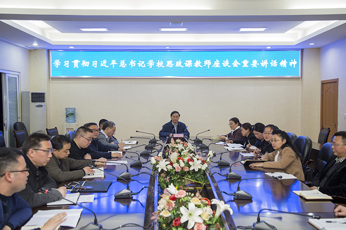 王成端在听完与会教师的发言后,强调习近平总书记对思政课教师提出的“六个要求”就是合格称职的思政课教师的标准,也是我们选拔思政课教师的标尺。学校在贯彻落实习近平总书记重要讲话精神的过程中,要切实把思政课作为落实立德树人根本任务的关键课程,落实上好思政课,关键在教师,关键在发挥教师的积极性、主动性、创造性的要求,下大力气抓好思政课教师队伍建设;落实推动思政课改革创新,不断增强思政课的思想性、理论性、亲和力、针对性的要求,切实加强思政课教学方法的改革和考核评价的创新;要加强党的领导,切实把思政课建设摆在学校党委工作的重要议程,党委常委会每年至少专题研究一次思政课程建设,制定有效措施,解决实际问题,增强工作成效。