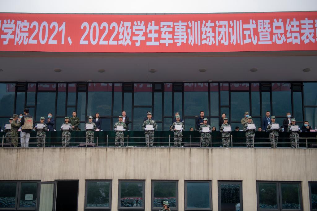11月9日,学校2021、2022级学生军训闭训式暨总结表彰大会在莲湖校区和南坝校区分别举行。