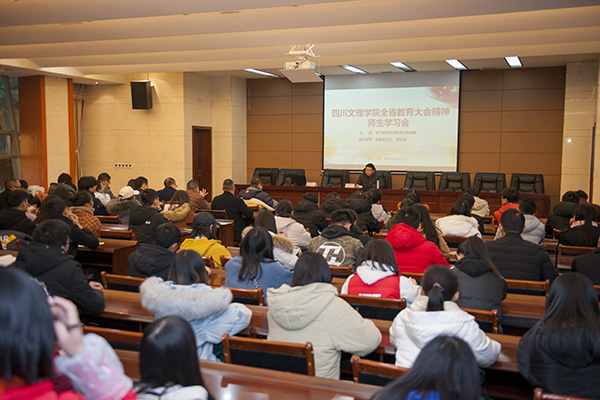 侯忠明运用大量翔实的数据,全面、系统、深入地解读了全省教育大会的精神实质,并将四川省教育改革发展面临的新形势、新任务、新要求作了生动阐述。最后,他要求全校职能部门和二级学院准确理解好、落实好全省教育大会精神,结合实际研究制定贯彻落实全省教育大会精神的具体措施,确保把全省教育大会各项部署落实在具体工作中,加快推进教育现代化,着力推动新时代全省教育改革发展再上新台阶。