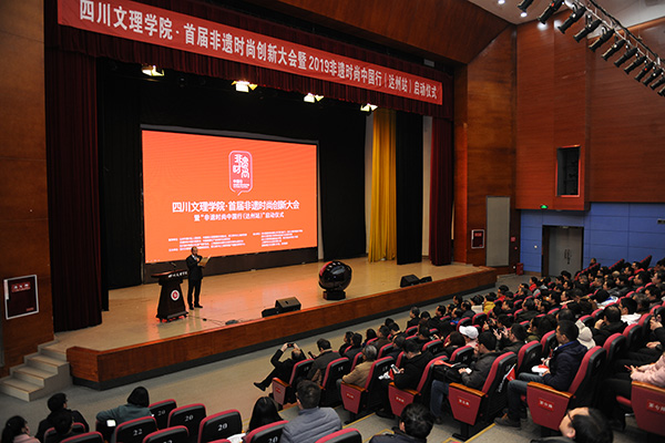 王晖分享了自己通过22年的学习,传承与发展蜀绣所做的探索,提出了非遗时尚化的建议和措施。她现场讲解蜀绣的部分技法和精美绝伦的作品,让在场的观众叹为观止。她将蜀绣运用到不同的载体上,进行创新融合,让观众体验了蜀绣艺术的传统之美。刘承川教授就石桥火龙非遗艺术认为,文化产业要发展,对于文化资源丰富的达州地区来说,必须实施资源驱动战略,达州非遗的视觉元素,超级IP未来一定有很多出自于这些具有地方特色和文化特征的非遗资源宝库。蔡励才在演讲中传达了 “先有文化生态,再有非遗传承”的理念。他表示,“2019非遗时尚中国行”系列活动将把具有代表性的传统非遗文化元素进行提炼,结合当代美学,进行时尚创作设计,打造非遗时尚图案IP,通过聚合各路媒体、时尚明星大咖、公益机构以及各互联网平台,整合资源和力量,把非遗时尚IP化,实现非遗的创造性转化及创新性发展。许建斌表达了新一代青年群体对中国传统文化传承和发展的坚定态度和责任担当,同时向pp电子师生发出星青年校园创客召集令,号召青年师生加入非遗时尚创客行列,用更时尚的手段助推中国非遗时尚复兴。