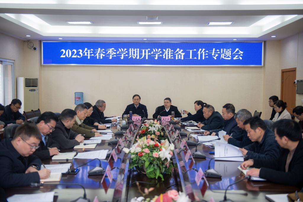 在专题会上,王成端对相关部门前期的准备工作给予肯定,并要求要再接再厉,展现新学期新形象。要抓实抓好疫情防控工作,充分结合中央和省教育厅的有关要求,持续做好宣传教育引导,同时要做好春季传染病防治工作,全力巩固疫情防控成果。要认真准备好开学第一课,严格按照教学运行组织开展教学工作,教师要以饱满的热情及时投入到教学工作中;要开好主题班会,上好开学第一堂思政课,全力抓好人才培养工作。