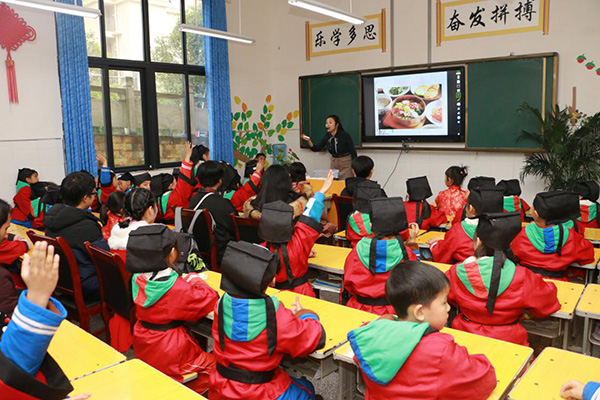 签字仪式后,与会领导、老师与留学生们一同观摩了一小莲湖学校丰富多彩、别具特色的国学文化课堂。