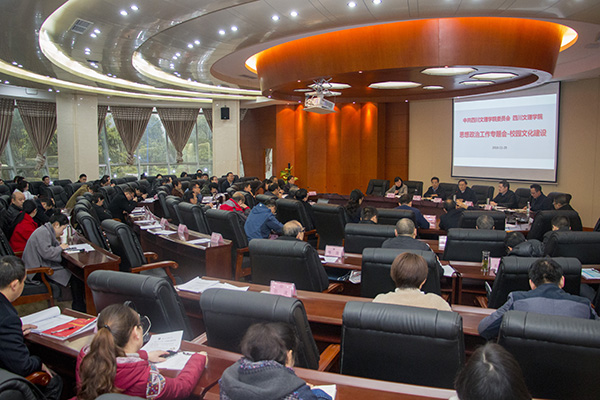 11月29日,学校召开校园文化建设专题会,研究部署校园文化建设事项。党委书记王成端主持会议,党委副书记、纪委书记雷超,副校长李壮成、朱兴华、邓杰出席。