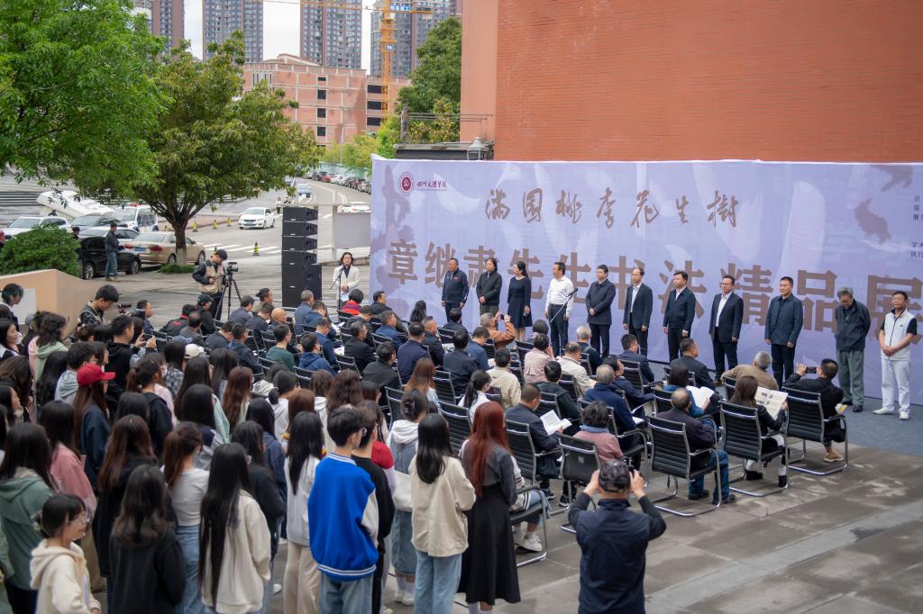 为繁荣校园文化艺术,传承老一辈书法家的治学精神。5月8日上午,“满园桃李花生树”——章继肃先生书法精品展隆重开幕。党委书记黄涛、校长侯忠明、党委副书记朱兴华、副校长程碧英、达州市文联党组书记主席任珂、达州日报社党委书记何南观、达州市书法家协会主席马骏华、达州市美术家协会主席龙飞、达州日报原社长李明荣、达州市老年人体育协会主席喻东、大世纪书画院院长肖超、学校各职能部门领导、参展作品收藏者、部分达州籍书法家以及师生代表参加开幕式。