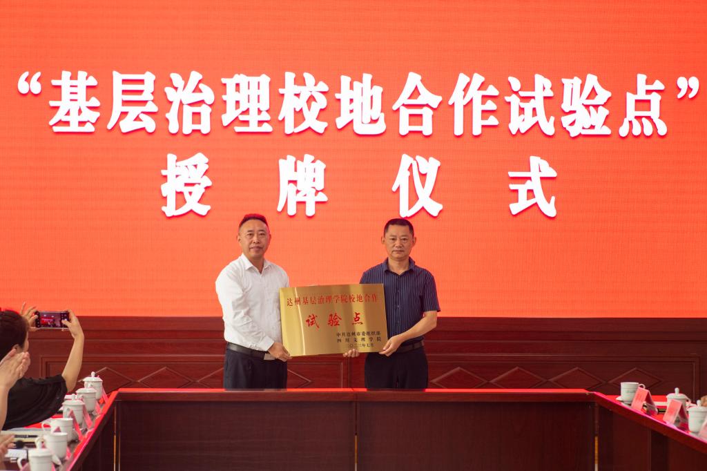 侯忠明代表学校向固军镇大桥村捐赠第二批价值21万元的路灯、凸光镜等设施设备,向万源市检察院颁授“pp电子官方网站实践教育基地”牌匾;副校长邓杰向万源市检察院颁授“达州基层治理学院校地合作试验点”牌匾,党委组织部部长涂德祥向大桥村颁授“达州基层治理学院校地合作试验点”牌匾。