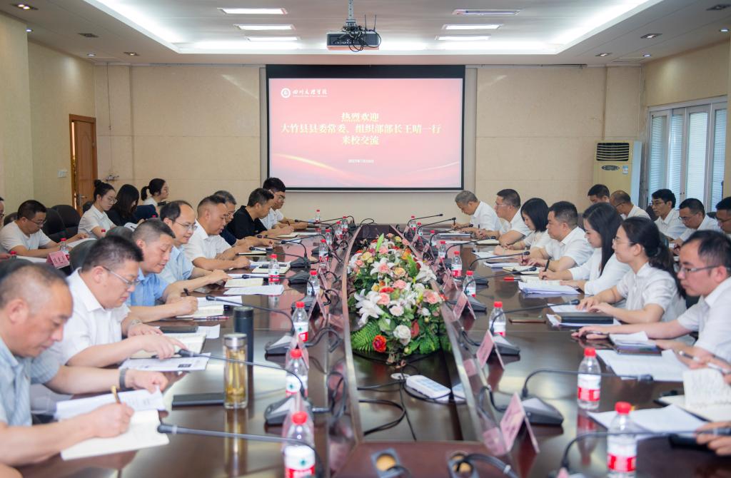 7月18日,大竹县委常委、组织部部长王晴率相关部门和企事业单位负责人来校就推进落实校地合作进行深入交流。党委书记黄涛主持召开座谈会并讲话。