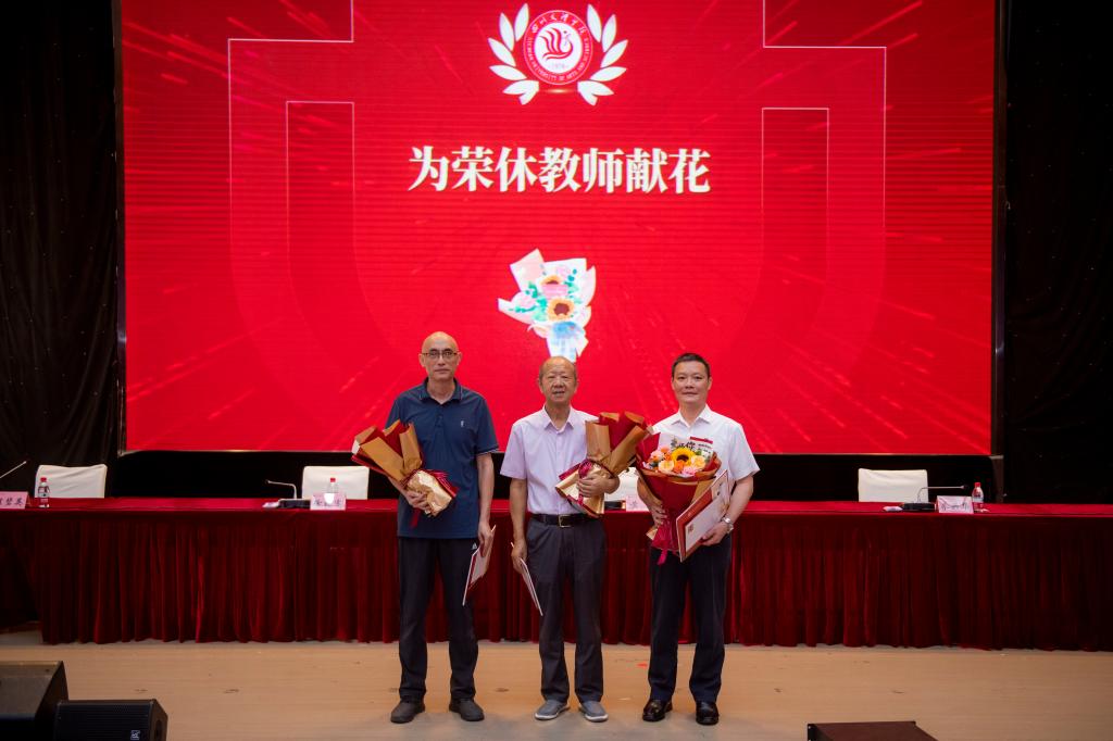 大会为2023年荣休教师献花并颁发纪念卡,为获评2023年“四川省优秀教师”,pp电子官方网站“优秀教师”“优秀教育工作者”,第三届四川省普通本科高校教师教学创新大赛三等奖、第三届全国高校教师教学创新大赛校赛获奖者,2022年科研工作获奖单位和科研十佳,入选全国档案工匠型人才和全国业务骨干教师颁发证书和表彰奖励,为在校工作三十周年教师颁发纪念卡和纪念章。