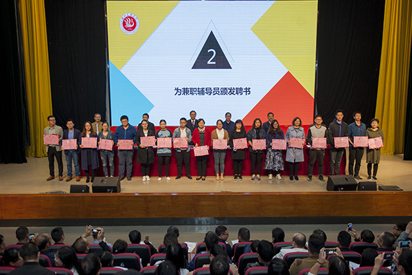 学校领导为2018-2019学年157名兼职辅导员颁发聘书。