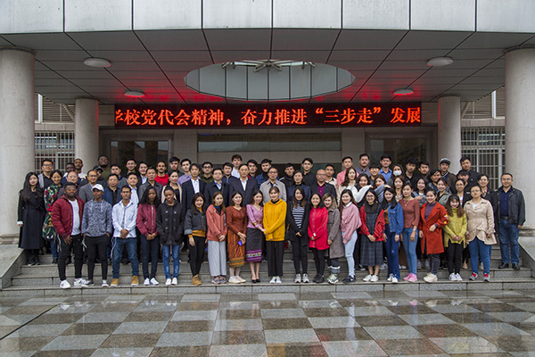 刁永锋向来自老挝、韩国、津巴布韦、也门、喀麦隆、加纳、尼日利亚、刚果(布)、卢旺达等国家的26名2018级留学生表示热烈欢迎,并希望留学生尽快适应新环境、勤奋读书、善于思考、勇于实践、敢于创新,不断提升能力;希望留学在学好汉语和专业知识的同时,更多地了解中国,把中国介绍给世界,向世界传播中国好形象;希望从事留学生教学的二级学院要精心管理,因材施教,提高质量;希望各职能部门、管理部门在生活上多了解留学生和关爱留学生,帮助他们尽快的适应中国的学习和生活。