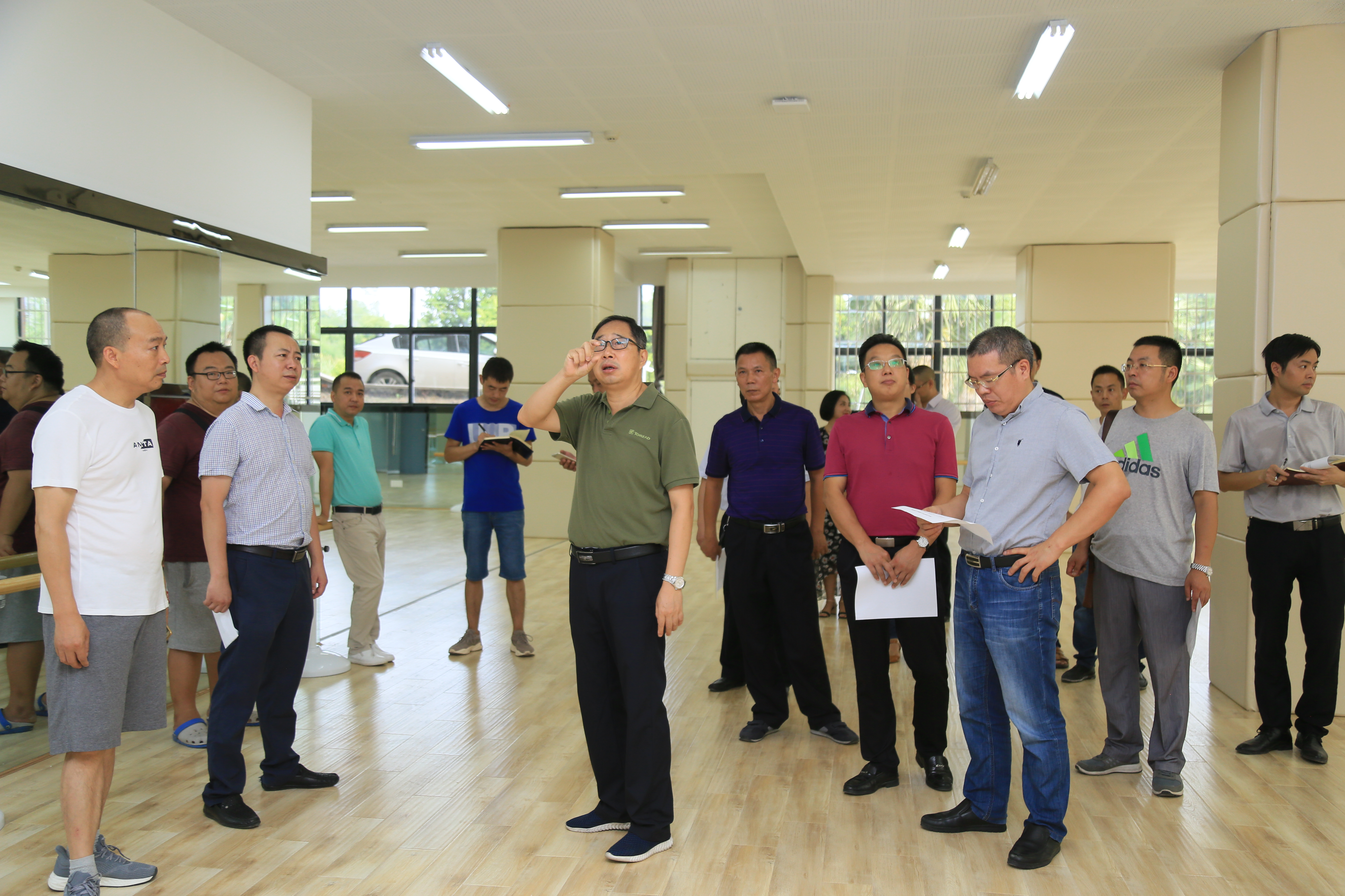 上午,刁永锋一行人来到艺术传媒楼形体室装修工程现场,查看并指出了栏杆、音响、窗帘等布局摆放问题。在美术学院查看时,提出走廊过道的改进建议。在多功能综合体育馆项目部施工现场,检查并督促施工方务必保证施工质量和施工进度。在四川革命老区发展研究中心、巴文化研究院和大学生创新创业俱乐部的督查走访中,刁永锋提出需要进一步做到合理的空间利用以改进师生科研条件,要对已取得的大学生创新创业项目成果及其孵化实施进行美观得体的展示和形象宣传。在学术交流中心,刁永锋试看了焕然一新的高清显示屏后,当即询问旧屏幕能否供大型教室和就业宣讲等循环利用,指示器材不能浪费。副校长李壮成、徐晓宗、邓杰等在第一教学楼等处检查指导时,敦促施工方现场负责人切实解决教室墙壁粉刷欠佳、电线线槽摆放不当和风扇、多媒体等硬件设施安全运行等问题;详细问询施工和卫生工作,嘱咐专人和施工方要严格落实合同标准要求,不能偷工减料,完工后要对每个教室再次进行彻底检查。一行人还深入学生公寓、食堂,详细检视学生寝室新装空调和食堂库房、卫生间等处的细节,叮嘱要切实保障学生饮食卫生和住宿安全。