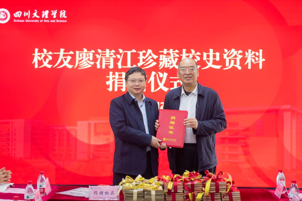 侯忠明说,廖清江校友是1980级中文系毕业生,毕业后一直心系母校发展。他作为达州市政协副主席,工作繁重,但只要学校邀约,他都竭力为学校发展建言出力,毫无保留。2022年11月11日,在学校校友总会成立时,他被当之无愧选举为名誉会长。廖清江校友这次捐赠的100件校史资料是对母校100%的信任和情谊。学校校史馆要把廖清江校友及所有校友和社会朋友捐赠的校史资料永远保存好、宣传好、利用好,让这些凝聚师者、学子能量的精神力量广为传播。