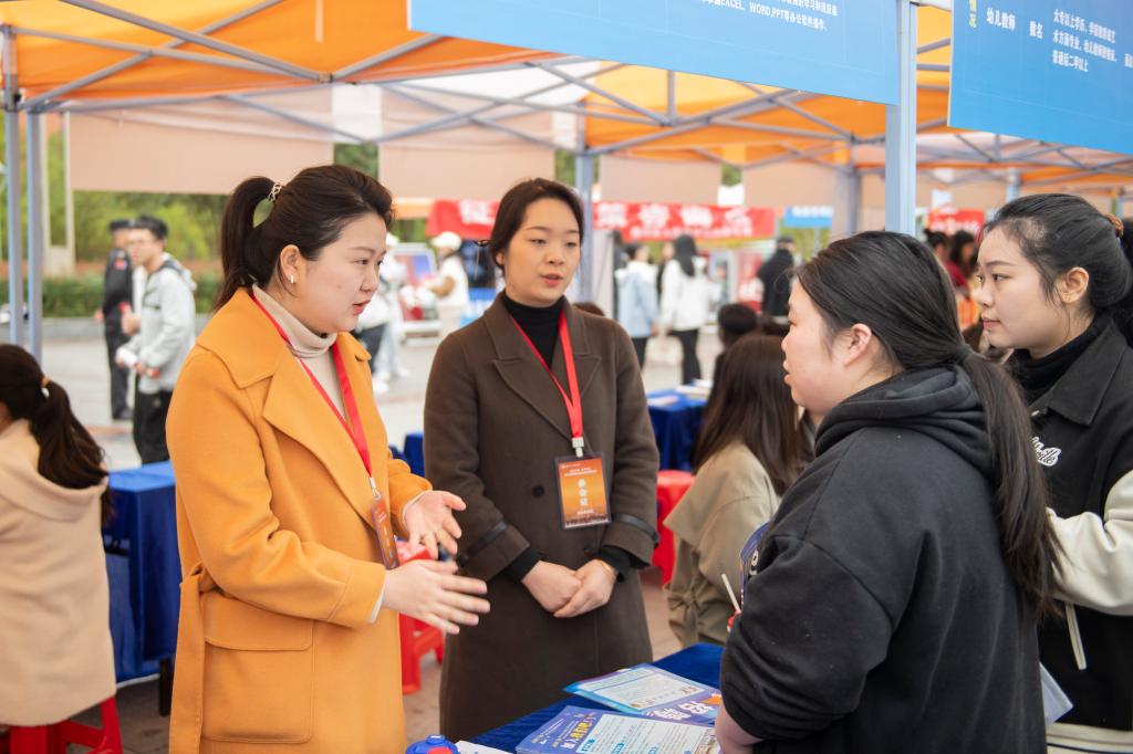 在教育行业招聘区,巴中龙泉外国语学校的李书记格外重视,亲自到场与毕业生交谈。他对学生的专业知识和实践能力表示赞赏,并鼓励他们积极投身到这个行业中,为国家的教育事业做出贡献。