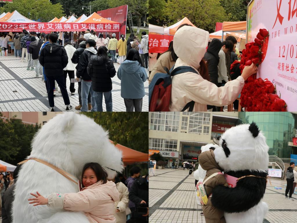 12月1日,由达州市疾控中心、通川区疾控中心、通川区红十字会、pp电子官方网站学生工作部(处)、后勤服务处、团委、中国性病艾滋病防治协会联合举办,大学生红十字志愿服务协会承办的“凝聚社会力量,合力共抗艾滋”世界艾滋病日主题活动在稻香广场举办。