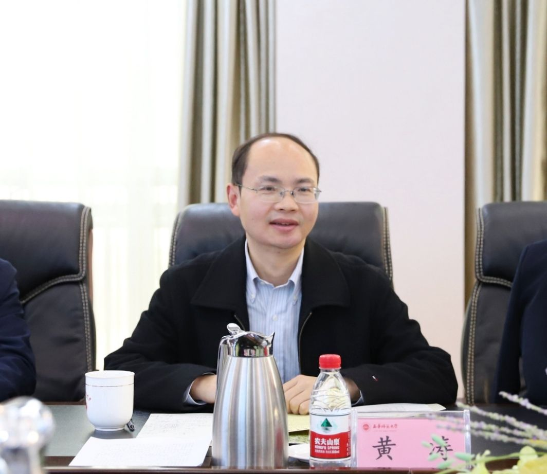 黄涛向西华师范大学长期以来对学校的关心支持和深厚情谊表示感谢,并介绍了学校办学理念、发展定位及主要举措。他指出,学校正处于第二次创业向第三次创业转换的关键时期,西华师范大学在人才、科技、学科等方面的经验做法值得学习借鉴。希望在学科建设、人才引进、科学研究、研究生教育和制度建设等方面给予更多支持和帮助,通过更加广泛深度的交流与合作,促进学校办学水平与人才培养质量不断提升。