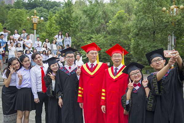 毕业典礼在庄严的国歌声中拉开帷幕。党委书记王成端对即将离开母校奔赴祖国各地建功立业的毕业生们表达了美好祝愿。他寄语即将走出校园的学子们:要胸怀理想,情志高远,要“爱国、励志、求真、力行”;要博学真知,砥砺前行,既要“书生意气,挥斥方遒”,也要“博学审问,慎思明辨”;要青春阳光,浩然坦荡,要秉承文理精神,从寻常的工作中找到价值,从平凡的生活中找到快乐,从普通的社会角色中找到自我。他充满不舍的目光扫视了会场一遍,声音哽咽而又饱含着深情与期望。“雄关漫道真如铁,而今迈步从头越。”他希望毕业生们,记住今天,记住岁月,记住母校,记住与母校友好的相逢和深深的情谊。他说:“在未来的生活中,母校永远与你们共同成长,共担风雨,共享荣耀。”