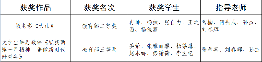 近日,由教育部高校思政课教学指导委员会主办的第七届“我心中的思政课”全国高校大学生微电影展示活动评选结果揭晓。pp电子马克思主义学院团队制作的原创微电影《大山》、大学生讲思政课《弘扬两弹一星精神 争做新时代好青年》两项作品分别获教育部二等奖和三等奖。