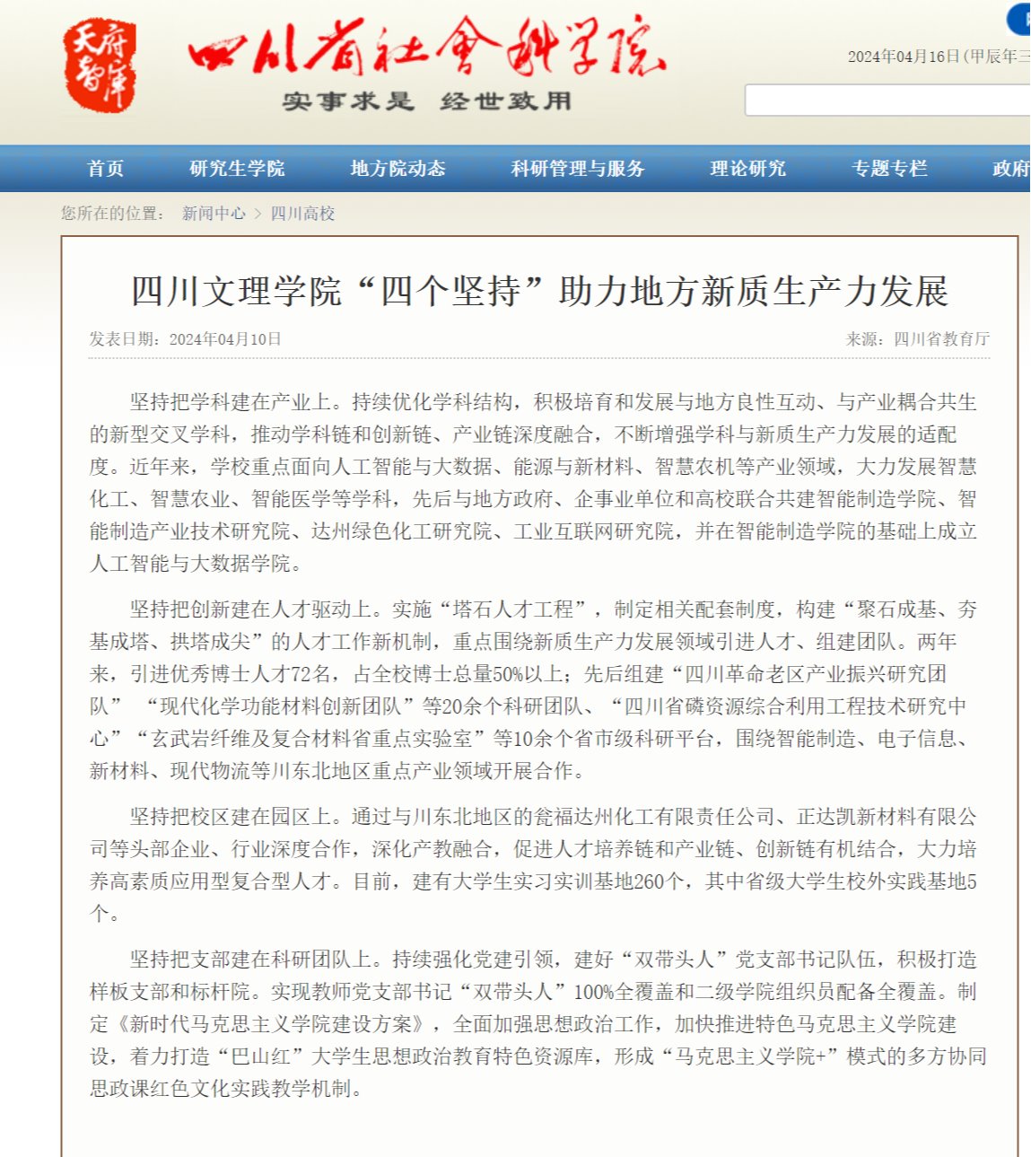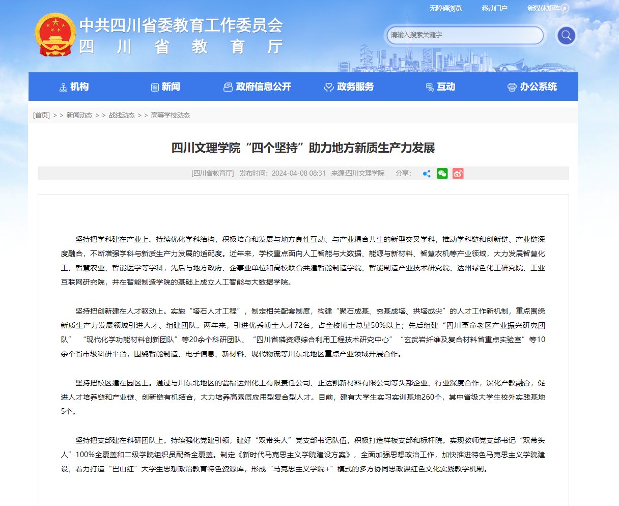 四川省教育厅和四川省社会科学院网站刊载pp电子助力地方新质生产力发展举措的文章:《pp电子官方网站“四个坚持”助力地方新质生产力发展》。