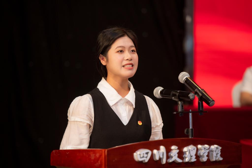 黄涛向加入共青团组织的新团员、获奖的集体和个人表示热烈的祝贺,向全校广大教育工作者和青年工作者致以崇高的敬意,向全校青年师生致以亲切的问候。他指出,在过去的一年里,学校共青团坚持党的领导,发扬“党有号召,团有行动”的优良传统,紧紧围绕学校中心工作,紧扣“为党育人,为国育才”这一主线,狠抓“领航、成才、发展、革新、强基”五大青春行动,深化实施“青年马克思主义者培养工程”,全面推进“青年大学习”和“网上共青团”建设,开展团员和青年主题教育,组织青年学生参加成都大运会专场演出,在思想教育、组织建设、社会实践、志愿服务、文化活动等方面,做了大量积极有益的工作,为青年学生的成长成才、为学校的建设发展做出了积极贡献。希望全校各级团组织要倍加珍惜荣誉,继续发扬成绩、再接再厉,进一步明确奋斗方向,努力书写出无愧于时代的精彩华章。