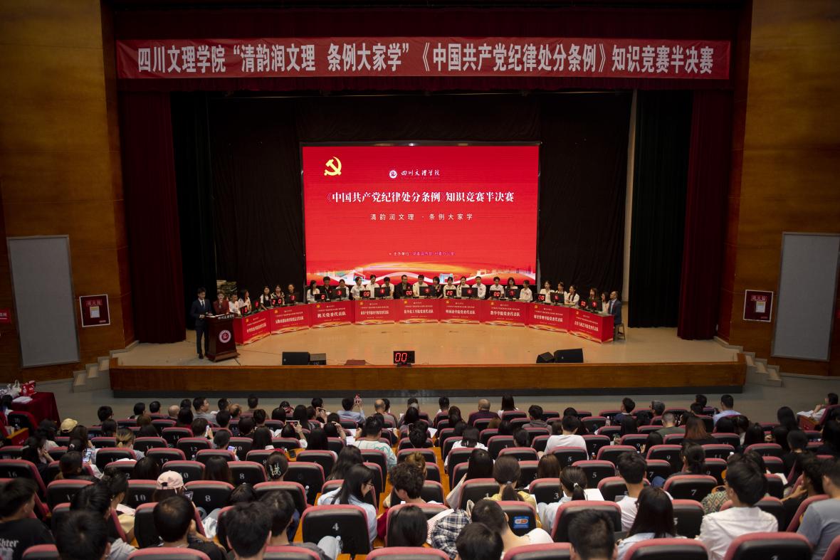 为深入学习贯彻习近平新时代中国特色社会主义思想,扎实开展好党纪学习教育,强化全校党员党纪党规学习,5月29日,校纪委办公室与党委宣传部联合举办了主题为“清韵润文理,条例大家学”的《中国共产党纪律处分条例》知识竞赛(半决赛)。来自十六个二级学院党委、机关党委、后勤&离退休&图书馆三个党总支共组成的18支队伍,54名参赛人员参赛。比赛特别邀请了政法学院/知识产权学院党委书记岳臣忠、副书记刘良训和徐寅智博士组成专家组答疑组,设立计分组,保证比赛的公平与公正。