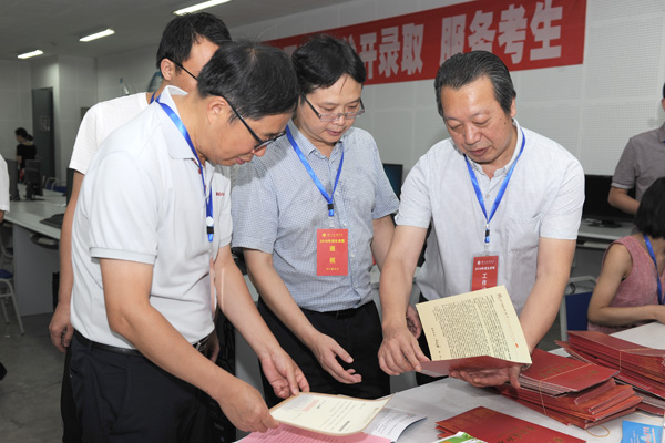 在招生录取现场,刁永锋听取了招生就业处负责人关于2018年招生录取工作进展情况的汇报,详细了解招生录取工作的各个环节以及招生宣传、录取生源等情况,查看招生录取工作流程以及录取通知书打印装袋情况,与工作人员座谈。对招生工作规范的录取流程、畅通的信息沟通渠道等给予了肯定。他要求:一是要善始善终,做好招生录取后续工作,力争画上圆满句号。二是及时总结经验,不断改善工作方法、提高工作质量。三是充分利用招生契机扩大学校影响。