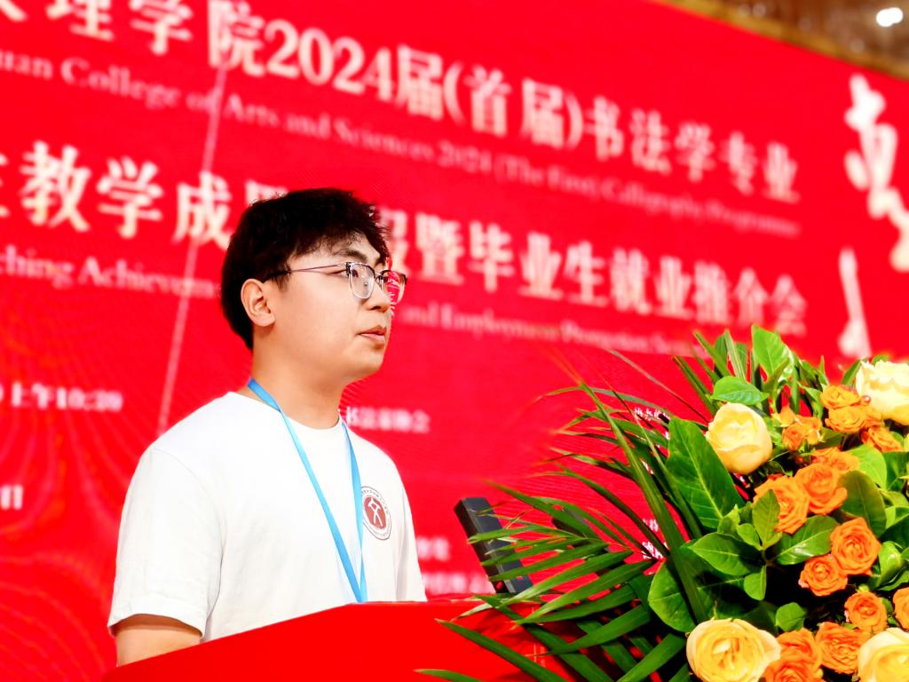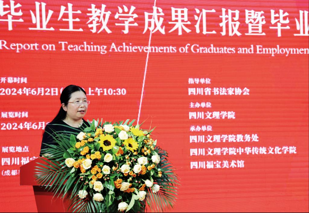 嘉宾代表中央文史研究馆书画院院务委员、四川大学艺术学院教授侯开嘉对此次活动的成功举办表示热烈祝贺,对参展的师生作品质量给予充分肯定。他勉励师生守正创新,传承好书法艺术,创造出更多优秀书法作品,并期待各高校加强交流沟通,共同促进我省书法艺术人才培养质量的提高。