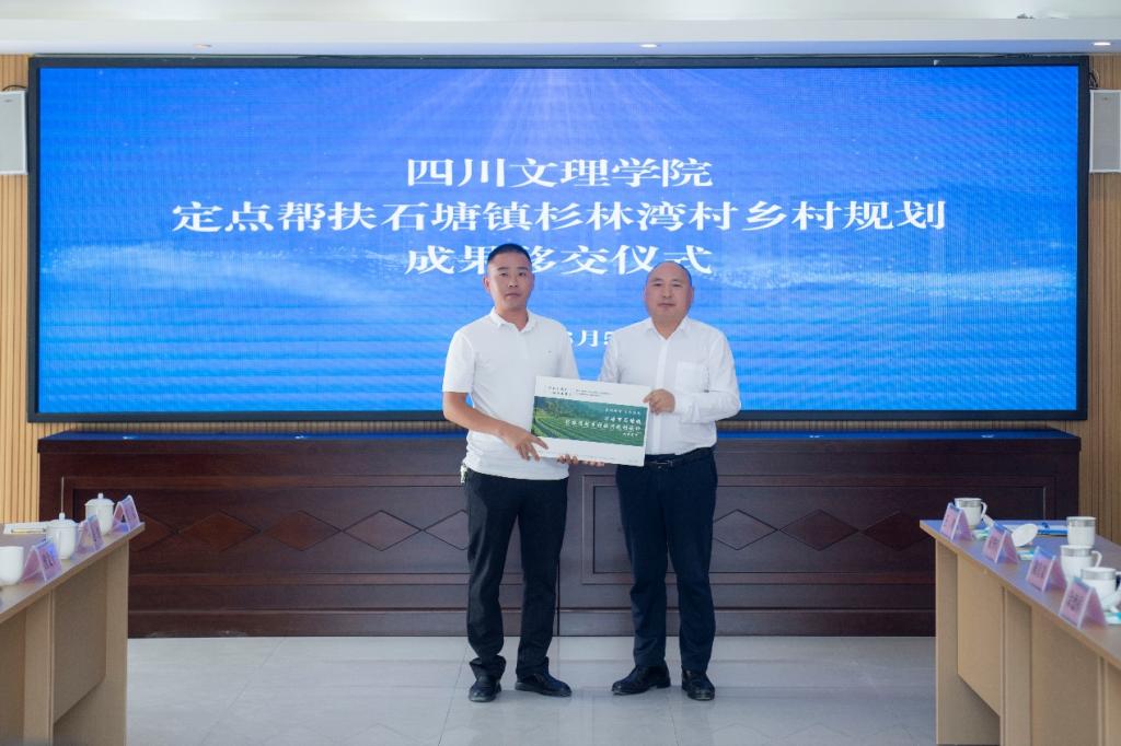 副校长邓杰代表学校向石塘镇杉林湾村捐赠集体经济帮扶资金10万元和价值4.2万元办公设备。