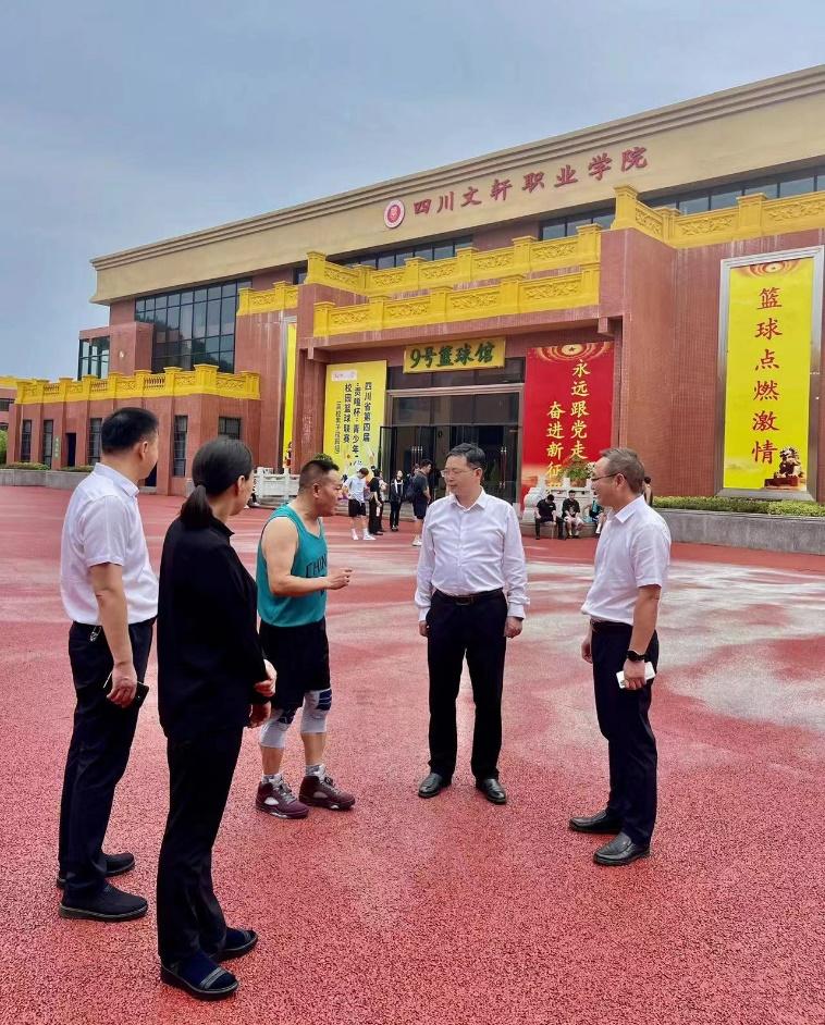 四川文轩职业学院党委书记余文盛、校长李亚非等学院领导对侯忠明一行表示欢迎,并陪同参观了成都校区和遂宁校区,简要介绍了学院的总体建设情况和发展规划,就近年来在人才培养、师资引进、专业建设等多领域的合作情况进行了交流。