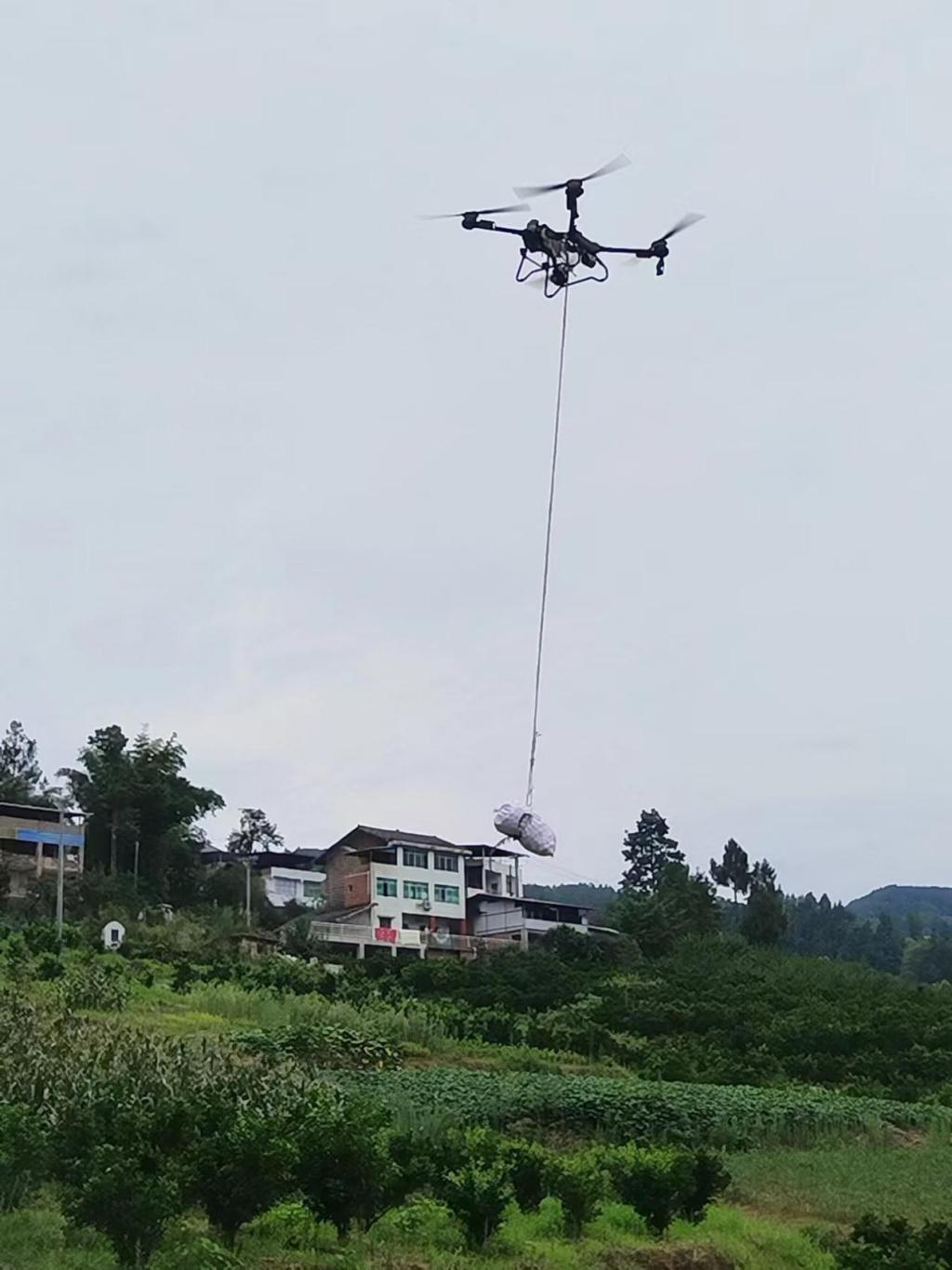 腾空、起飞、盘旋、落下……盛夏时节,宣汉县庙安镇香楼村、茶子村和向家沟村上空,无人机有序作业,一袋袋玉米、水稻和中药材沿着“飞手”规划的路线,被轻轻松松地从地里运到晒场。十天下来,pp电子无人机学院的无人机,高效完成了10万余斤农作物的低空转运作业。