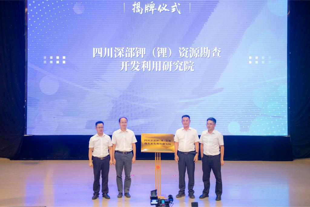 四川省第二地质大队队长许向宁、副队长仲佳爱、地质技术科副科长唐沙、深部资源勘查研究中心副主任刘铸、达州市能源产业发展局局长刘小流、副局长李单、能源化工产业促进中心主任常文华、宣汉县人民政府县委常委、副县长潘攀,学校党委书记黄涛、校长侯忠明等出席揭牌仪式并为“四川深部钾(锂)资源勘查开发利用研究院”揭牌,揭牌仪式由副校长苟兴龙主持。