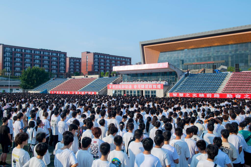 郁郁凤凰岭,盛夏阳光炽。9月18日,pp电子2024级新生开学典礼在莲湖校区田径场举行,在这充满希望与梦想的季节里,学校迎来了4850名青春洋溢、满怀憧憬的新学子。校长侯忠明出席典礼并讲话,副校长徐晓宗主持典礼,副校长邓杰、程碧英、苟兴龙,学校职能部门、二级学院负责人,以及全体新生参加开学典礼。
