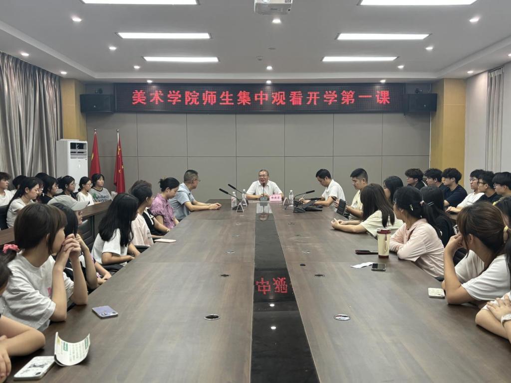 9月19日下午,学校组织全校学生观看2024年四川省大中小学思政教育秋季开学第一课。副校长徐晓宗在艺术传媒大楼美术学院会议室与同学们共同观看开学第一课并同学们亲切交流。