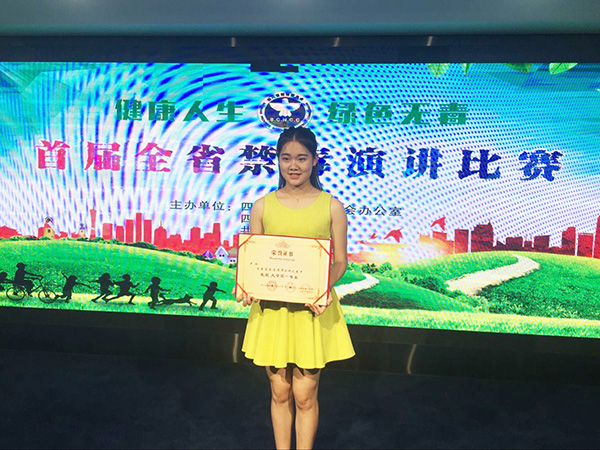 5月28日,首届全省禁毒演讲比赛在成都举行,pp电子学生罗琳在激烈的比赛中崭露头角,获得大学组决赛第一名,并将代表四川省参加全国禁毒演讲比赛。