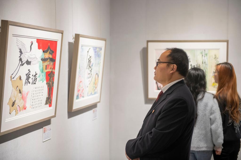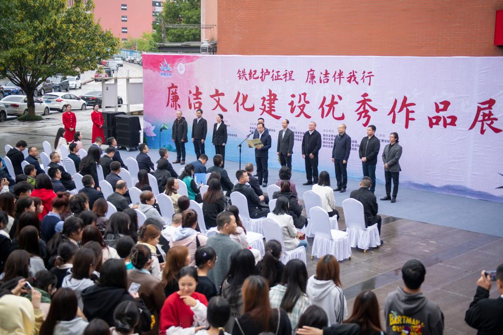 帅胤指出,举办此次廉洁文化作品展,既是深入学习贯彻习近平新时代中国特色社会主义思想和关于廉洁文化建设系列重要指示批示精神的具体体现,也是学校深化廉洁文化建设、持续丰富人文校园精神文化的一项重要举措。今年学校启动“铁纪护征程 廉洁伴我行”廉洁文化建设系列活动,旨在打造廉洁文化宣传新品牌,在传播廉洁之声、倡导廉洁理念、讲述廉洁故事、弘扬清风正气等多方面深耕细作,扎实推进新时代校园廉洁文化建设。