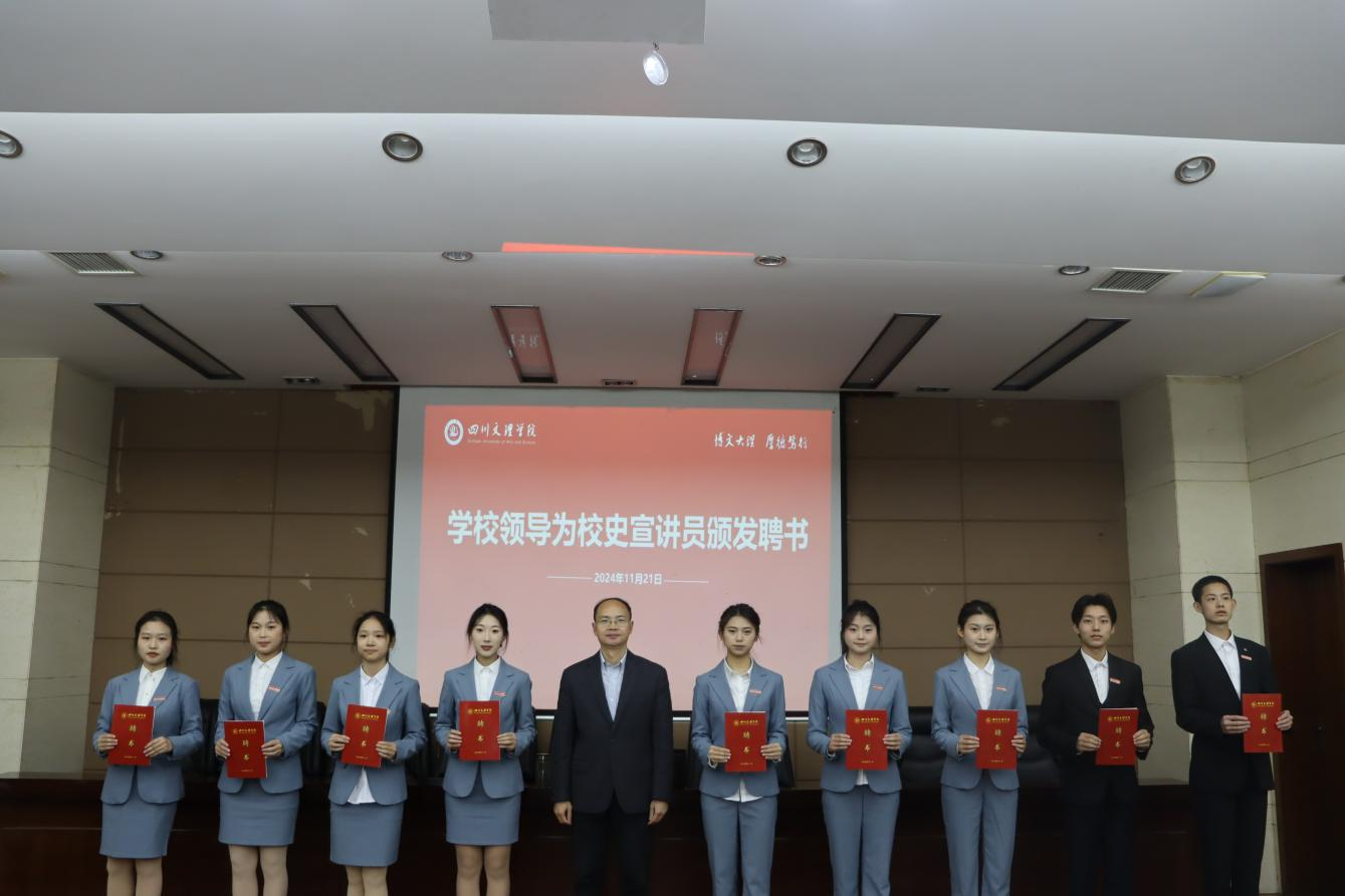 黄涛为一年来一直坚持训练,不断提升校史解说素质,现已能够在校史陈列馆上岗的校史宣讲员颁发聘书。