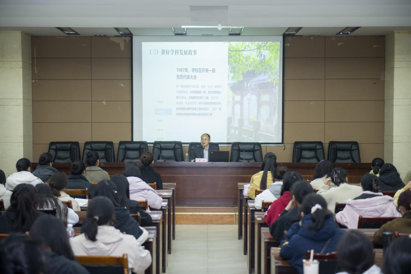 11月21日,党委书记黄涛围绕《树立正确校史观 讲述文理好故事 努力成为一名新时代优秀校史宣讲员》的主题,为校史宣讲员讲授别开生面的“校史”思政课。