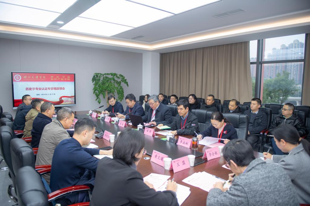 英语专业专家组王涛教授、刘承宇教授、张秀梅教授、席丽巧正高级教研员,特殊教育专业专家组于源溟教授、孙晶华教授、赵庆春正高级教师、薛云珍教授,历史学专业专家组田野教授、刘洪兴教授、李益彬教授、胡春光教授,及专家组秘书陈本炎副教授、丁洲老师、吴国华副研究员,四川省教育评估院高等教育监测评估所科研人员王安源,学校党政领导班子、相关职能部门负责人、认证专业所属学院党政班子成员及教师代表等参加了反馈会。