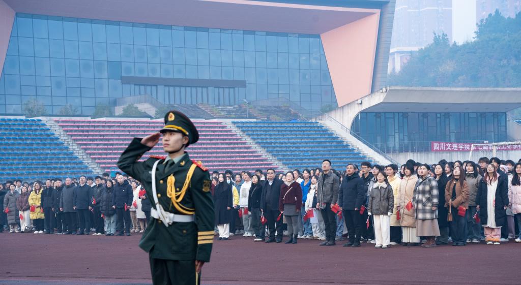 华章初展喜迎新年,爱国奋进共创一流。1月1日清晨,pp电子官方网站在莲湖校区和南坝校区隆重举行元旦升旗仪式。校党委副书记徐晓宗出席仪式,党(校)办、党委宣传部、团委、学生处,各二级学院师生代表800余人参加升旗仪式。