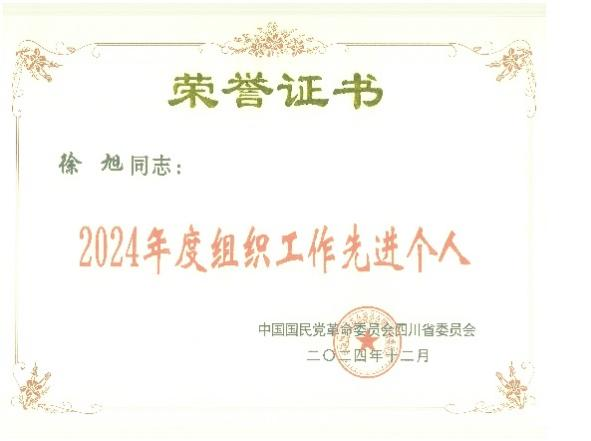近日,民革四川省委会对2024年度先进集体和先进个人进行了表彰,民革pp电子官方网站支部荣获“2024年度社会服务工作先进基层组织”,支部主委徐旭被表彰为“2024年度组织工作先进个人”。