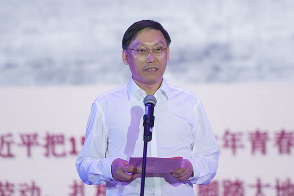 激动人心的暖场视频之后,党委书记王成端发表主旨讲话。他简要回顾了学校自2017年9月开展“文理青年学青年习近平”教育实践活动以来的工作情况。指出,开展“文理青年学青年习近平”教育实践活动是学校创新思想政治教育活动载体,构建学校“322”大思政工作体系的重要内容,学校加强对教育实践活动的领导,为全校青年师生赠阅《习近平的七年知青岁月》读本,多形式开展理论学习活动,将青年习近平的优秀精神品质融入教材、融入课堂、融入师生头脑,积极引导青年师生树立坚定的理想信念;充分发挥以文化人以文育人的重要功能,将青年习近平的优秀精神品质融入主题班会、党(团)日活动、品(朗)读会、演讲比赛等文化活动,引导青年师生践行青年习近平的为民情怀和奋斗精神;积极整合校内外各级各类宣传阵地,宣传青年习近平的优秀精神品质,官方微信、微博、易班等组织专题讨论,开展线上线下互动学习交流,有效激发了文理青年学青年习近平优秀精神品质的热情。“中青在线”、教育导报、四川教育网等校外媒体对学校教育实践活动进行了多角度宣传报道,产生了广泛影响。
