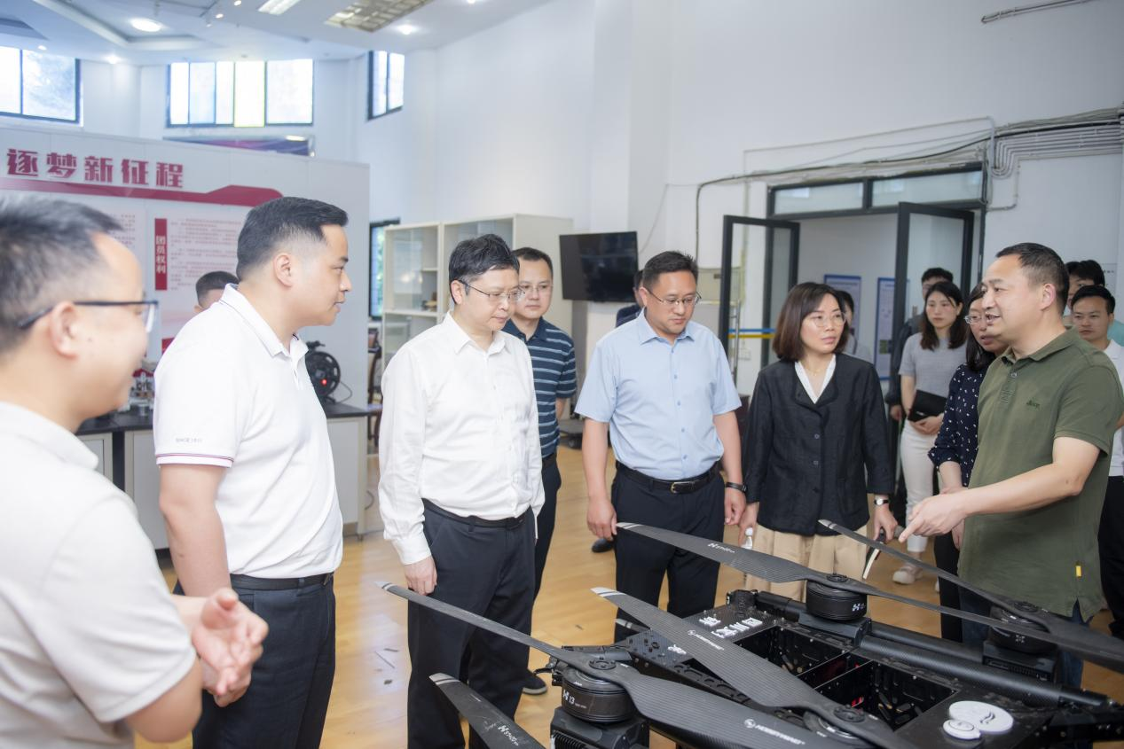 达州市委组织部副部长牟砚一行首先参观了学校无人机产业学院,无人机产业学院书记李涛给各位领导详细介绍了无人机产业学院发展情况。