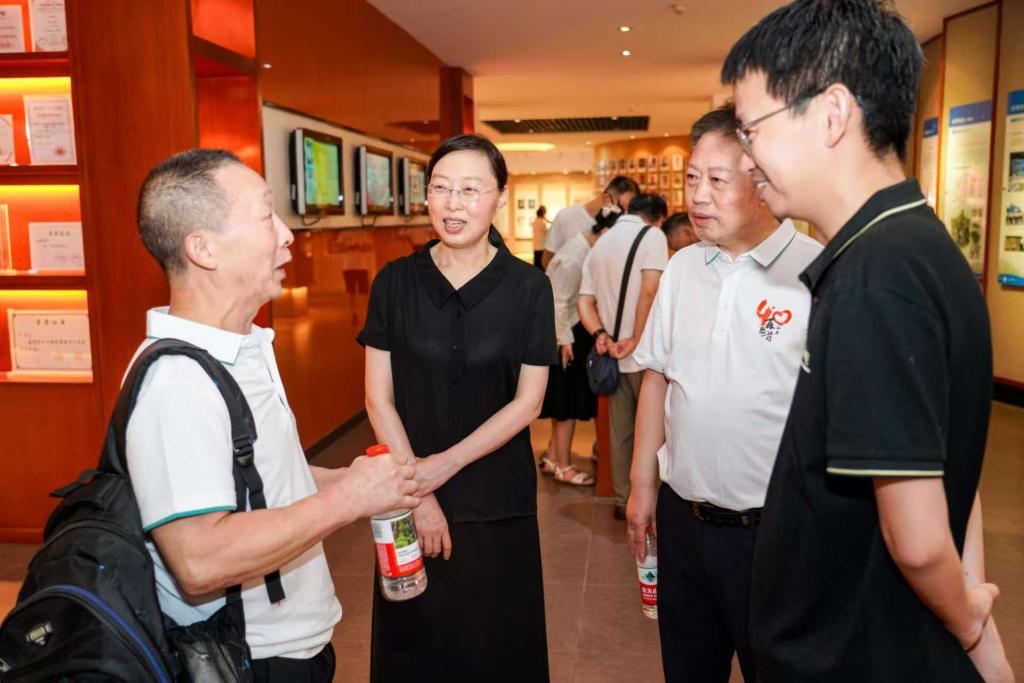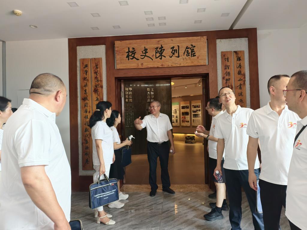 座谈会后,校友们身着纪念班服,开启了温馨的校园寻踪之旅。他们漫步在绿树成荫的校园里,在曾经上课的教室门口驻足凝望。在校史陈列馆内,校友们仔细观看每一张老照片、每一件实物展品,循着时间脉络重温学校的发展历程。
