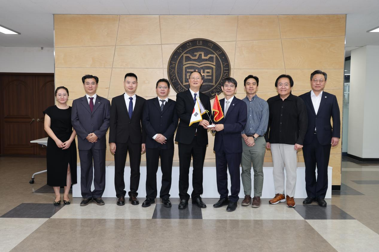 在韩国釜山国立大学,副校长李昌桓代表学校对熊兴中一行表示欢迎,交流过程中,双方院校介绍了各自学校的发展历程、特色专业以及在产学研合作方面的经验,探讨了双方在人工智能、新能源、智能制造等方面合作的可能性并签订了合作协议。根据合作意向,双方后期将开展师生交流学习、青年教师学历进修、产学研合作、学生实习实训工作坊共建等合作事宜。