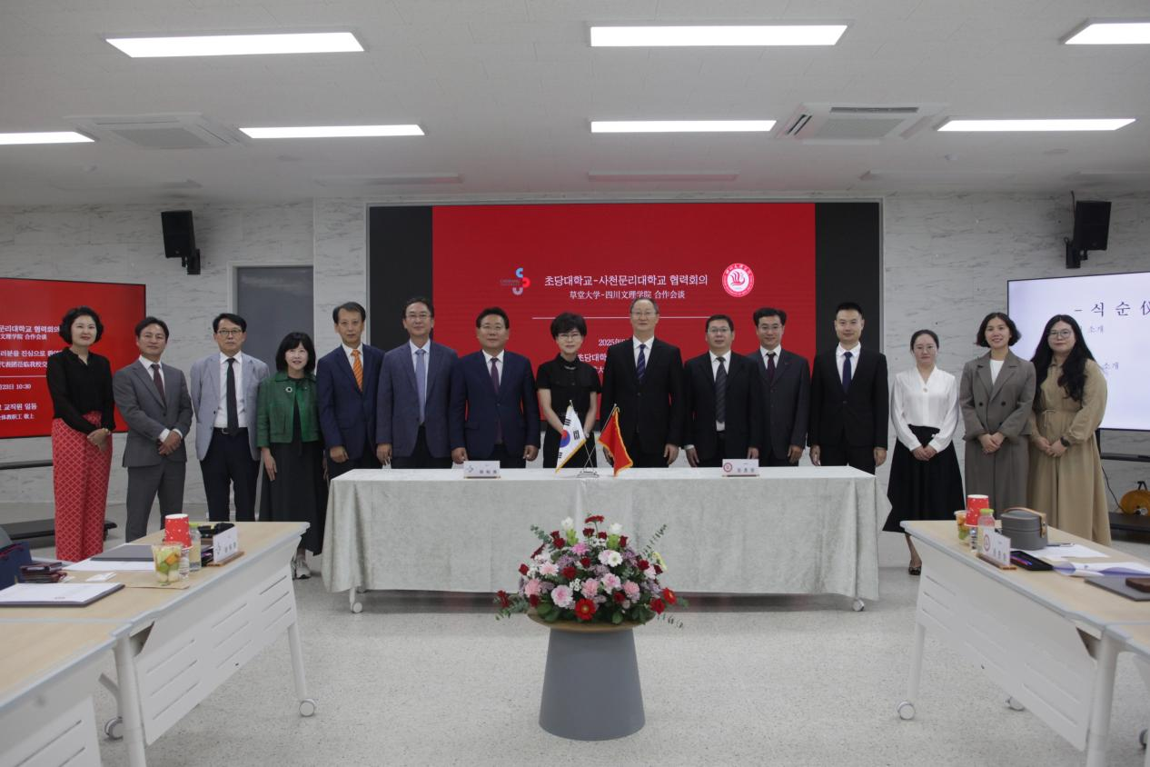 在韩国草堂大学,代表团受到校长徐裕美的热情接待。座谈会上,两校就交换生、短期研修以及教师互访方面进行探讨,就无人机、人工智能、护理、旅游与草堂大学合作的可能性进行探讨,熊兴中一行还实地参观了草堂大学的神鹰飞行教育院、韩国语教育中心、口腔卫生系、烹饪系、美容系等,双方围绕应用型人才培养模式、应用型课程建设、国际教育等方面展开交流并续签了合作协议。