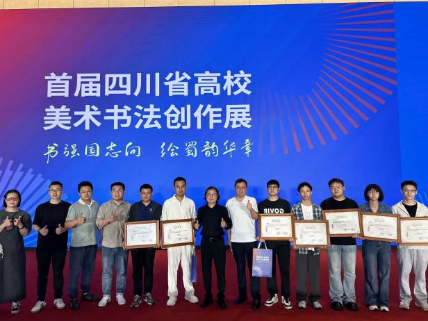 本次展事以“书强国志向绘蜀韵华章”为主题,由四川省教育厅、四川省文学艺术界联合会主办,四川省美术家协会、成都师范学院、四川省书法家协会承办,面向全省大中小学(含中等职业学校)教师和大学生征集作品,共计收到参评作品2998件,涵盖中国画、油画、版画、雕塑、篆书、隶书、楷书等多种艺术形式。经评审,最终评选出书法类获奖作品184件、美术类获奖作品296件,中华传统文化学院有6件教师书法作品和26件学生作品获奖,其中学生一等奖全省15件,pp电子有8件;教师一等奖全省7件,pp电子有2件。美术学院有10件美术作品获奖,其中学生1件、教师9件。