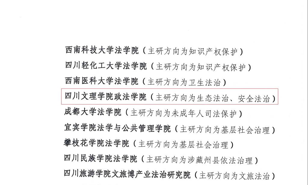 首批研究基地的设立,旨在深入贯彻落实习近平法治思想,推动法学理论研究与法治实践深度融合,为更高水平的法治四川建设提供智力支撑。作为培育单位,政法学院将进一步整合研究力量,深化学科交叉融合,强化科研团队建设,重点围绕生态法治、安全法治领域开展研究,积极承担相关课题,着力打造具有学校特色的科研品牌,力争产出一批高质量、有影响力的研究成果,为全面推进依法治省、建设法治四川贡献文理力量。